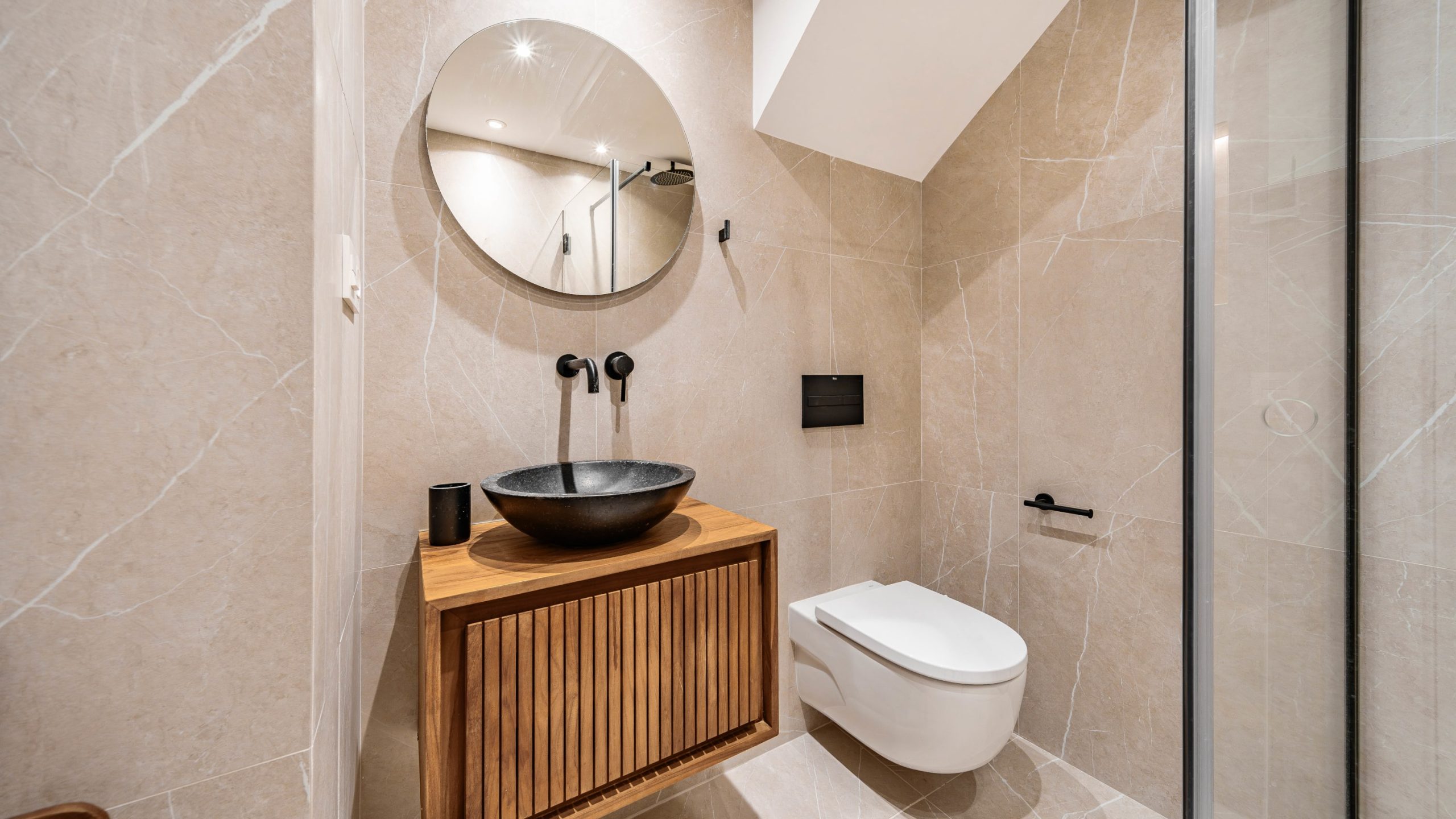 The kitchen is fully equipped with appliances, including a dishwasher and washing machine, ensuring everything you need is at your fingertips. The master bedroom, complete with an ensuite bathroom, opens directly onto a private rooftop balcony, providing breathtaking views.