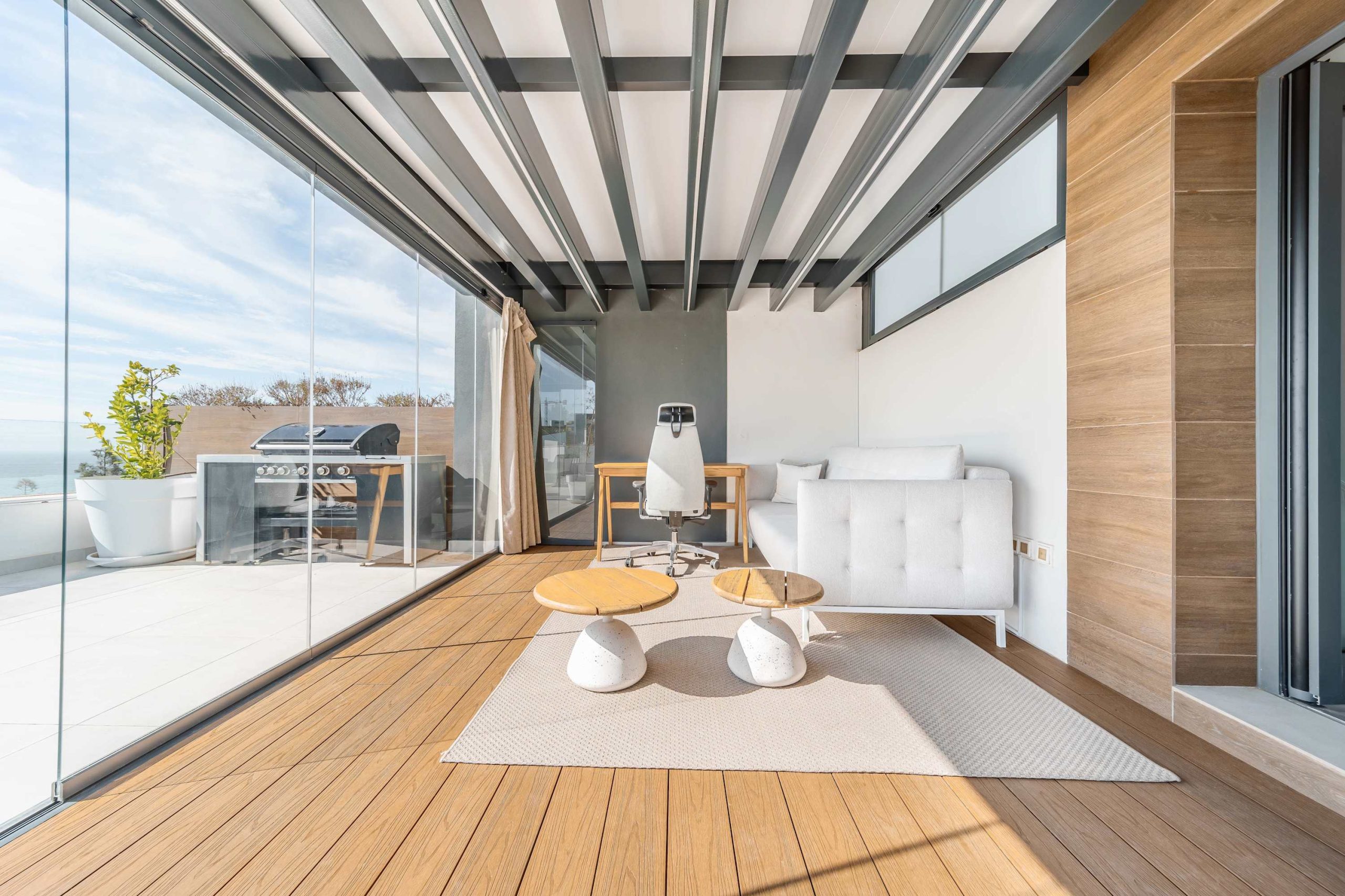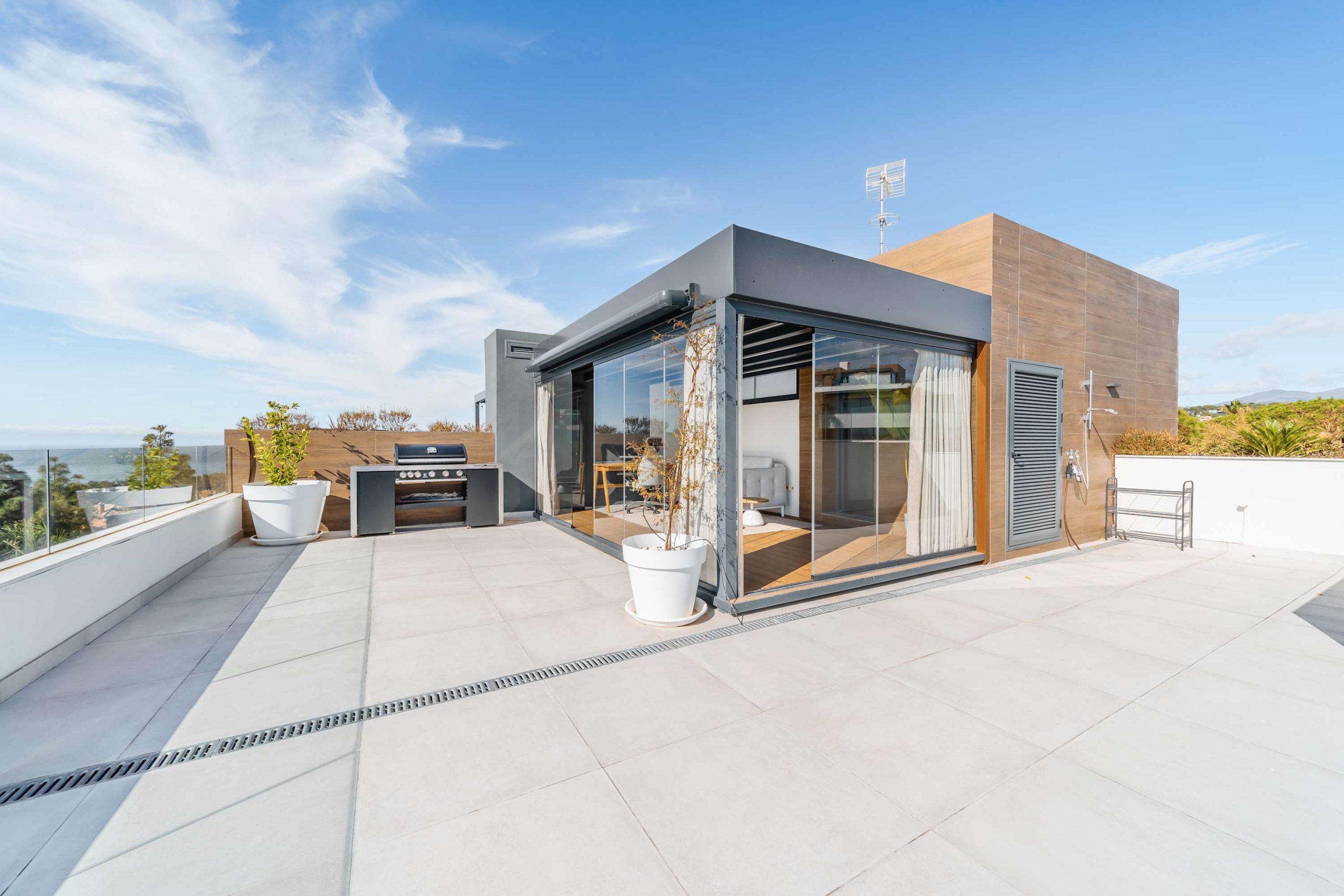 Upstairs, unwind in the cozy glass enclosed lounge before stepping out onto your private rooftop. Here, a plunge pool, BBQ, and panoramic views invite total relaxation, whether you're basking in the sun or enjoying dinner under the stars.
