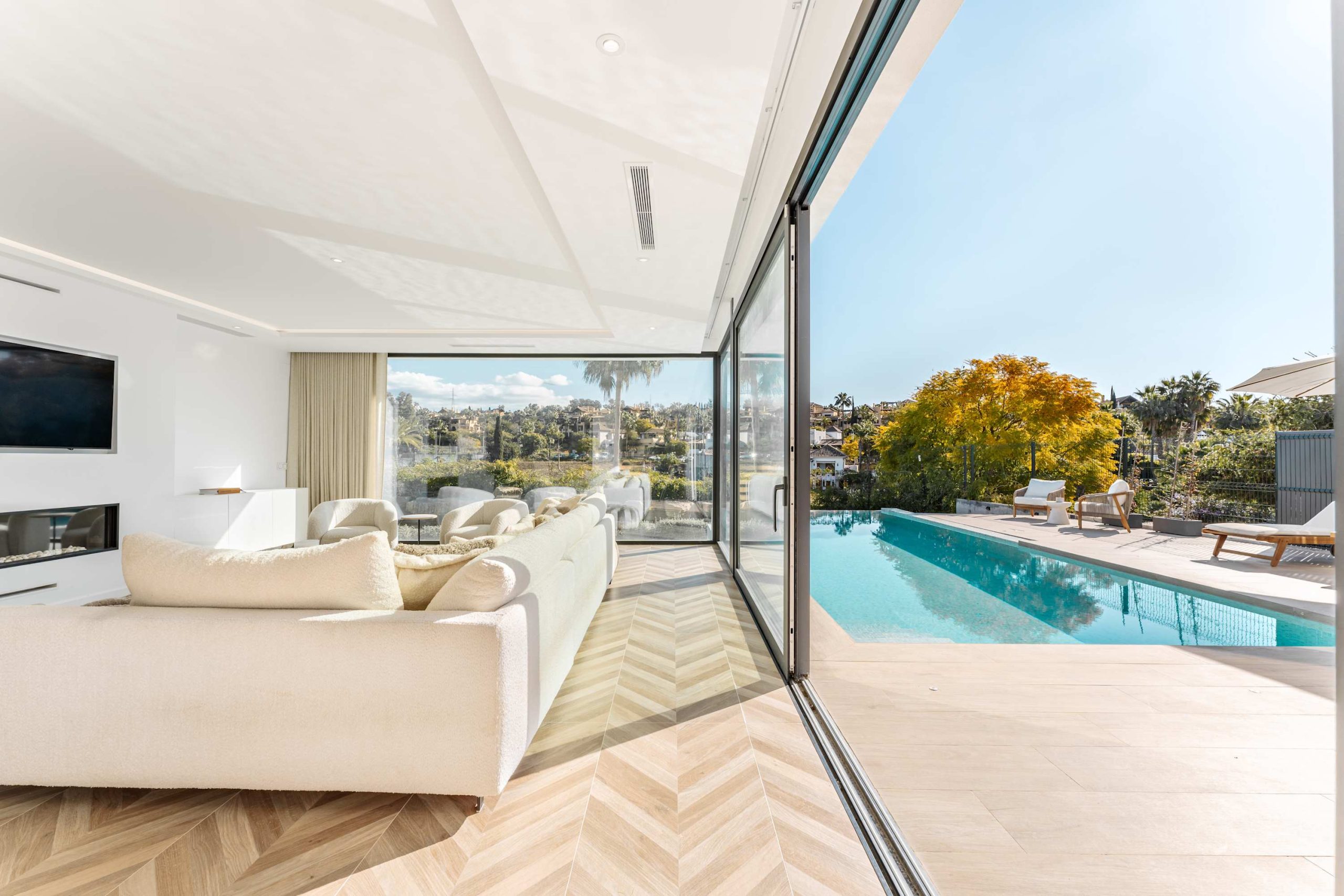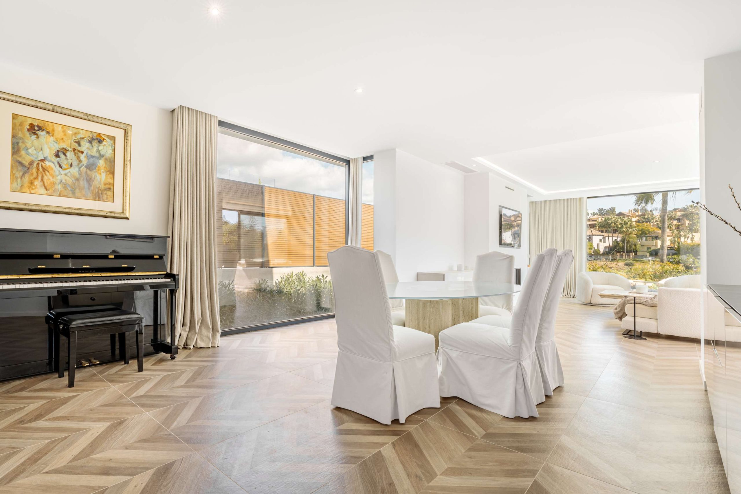 Nestled in the peaceful enclave of El Paraiso, Villa Francesca offers the perfect blend of seclusion and convenience, just a short 3-kilometer drive from the beach. This stunning villa overlooks the beautiful El Campanario Golf Course and is within an 8-minute drive of three other renowned golf courses: El Paraiso Golf, Atalaya Golf, and Guadalmina Golf. For those seeking a taste of luxury, the iconic Puerto Banus marina is only 10 minutes away by car. Surrounded by lush Andalusian landscapes and neighboring upscale estates, this villa provides a serene retreat with easy access to some of the best golf and coastal experiences the region has to offer.