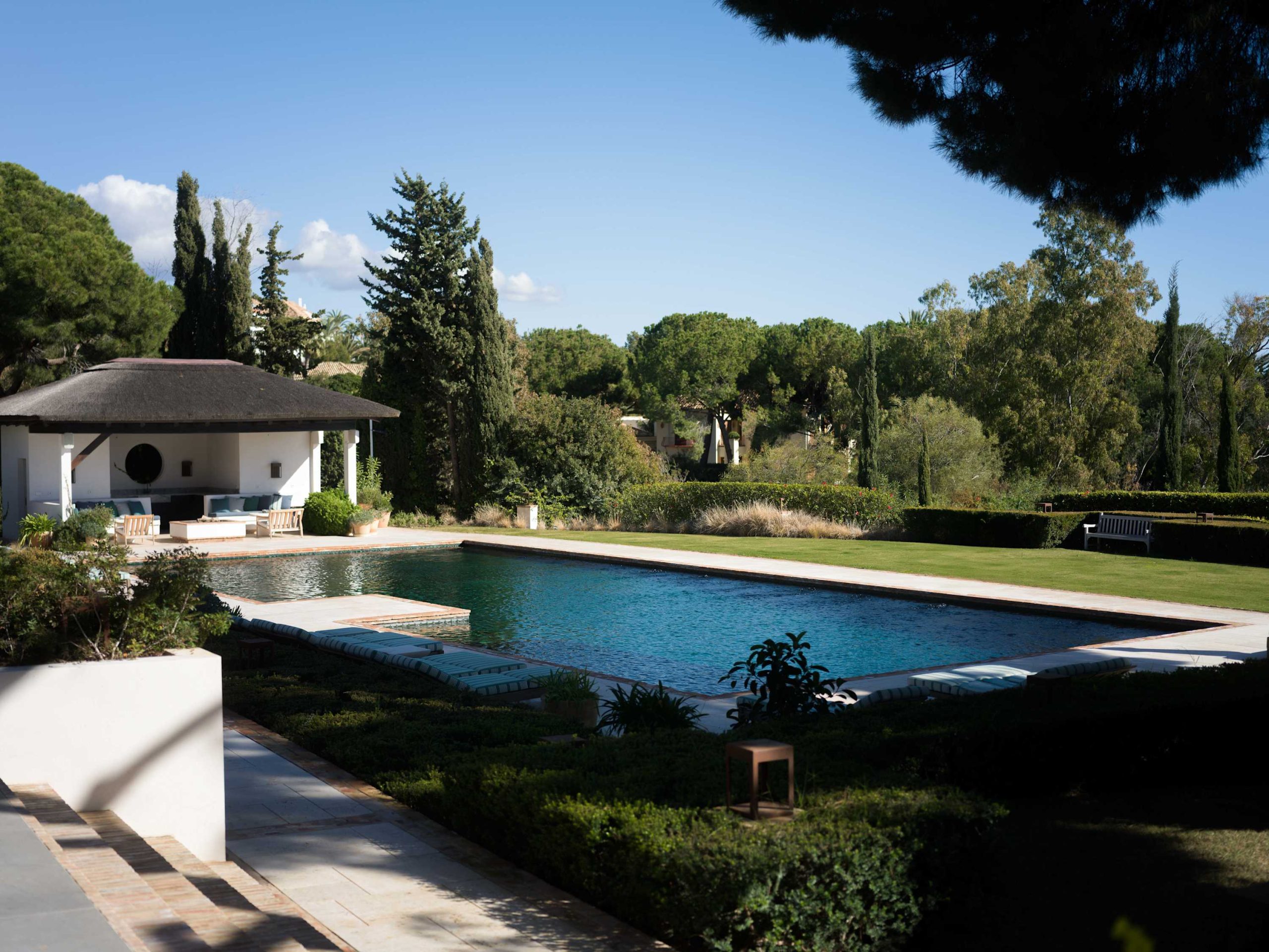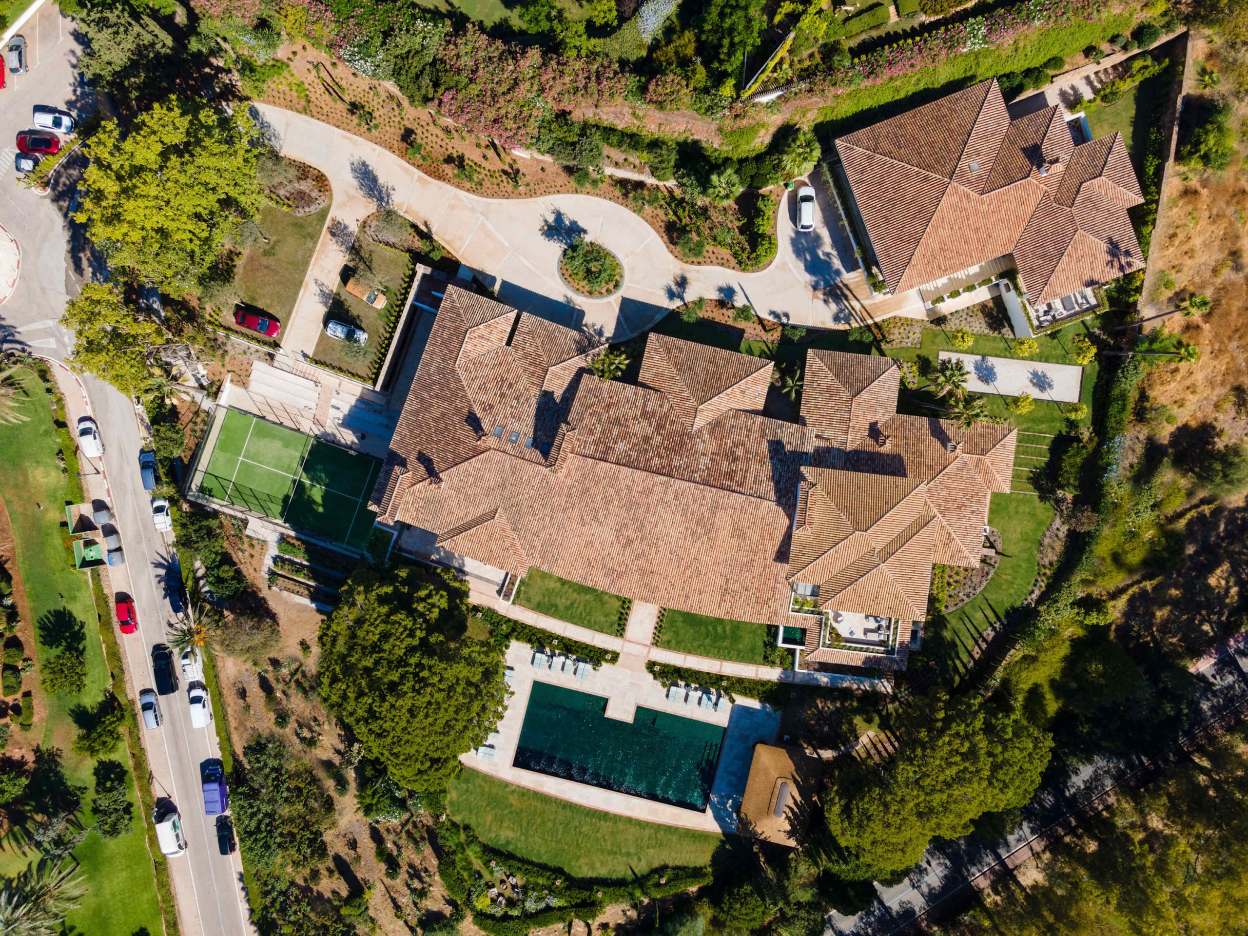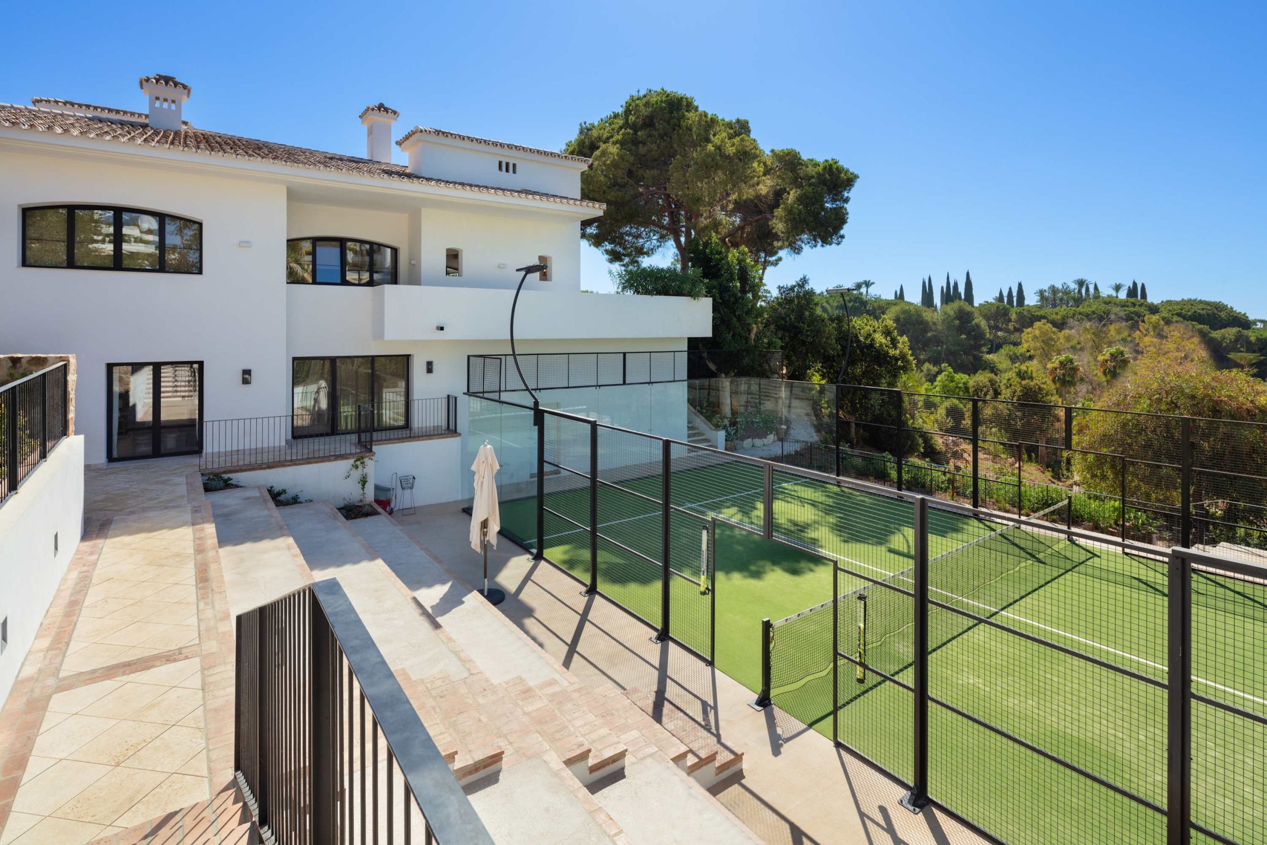 Outdoors, enjoy Andalusian architecture with expansive patios, lush gardens, and a large swimming, tennis court and ample spacing throughout the plot.