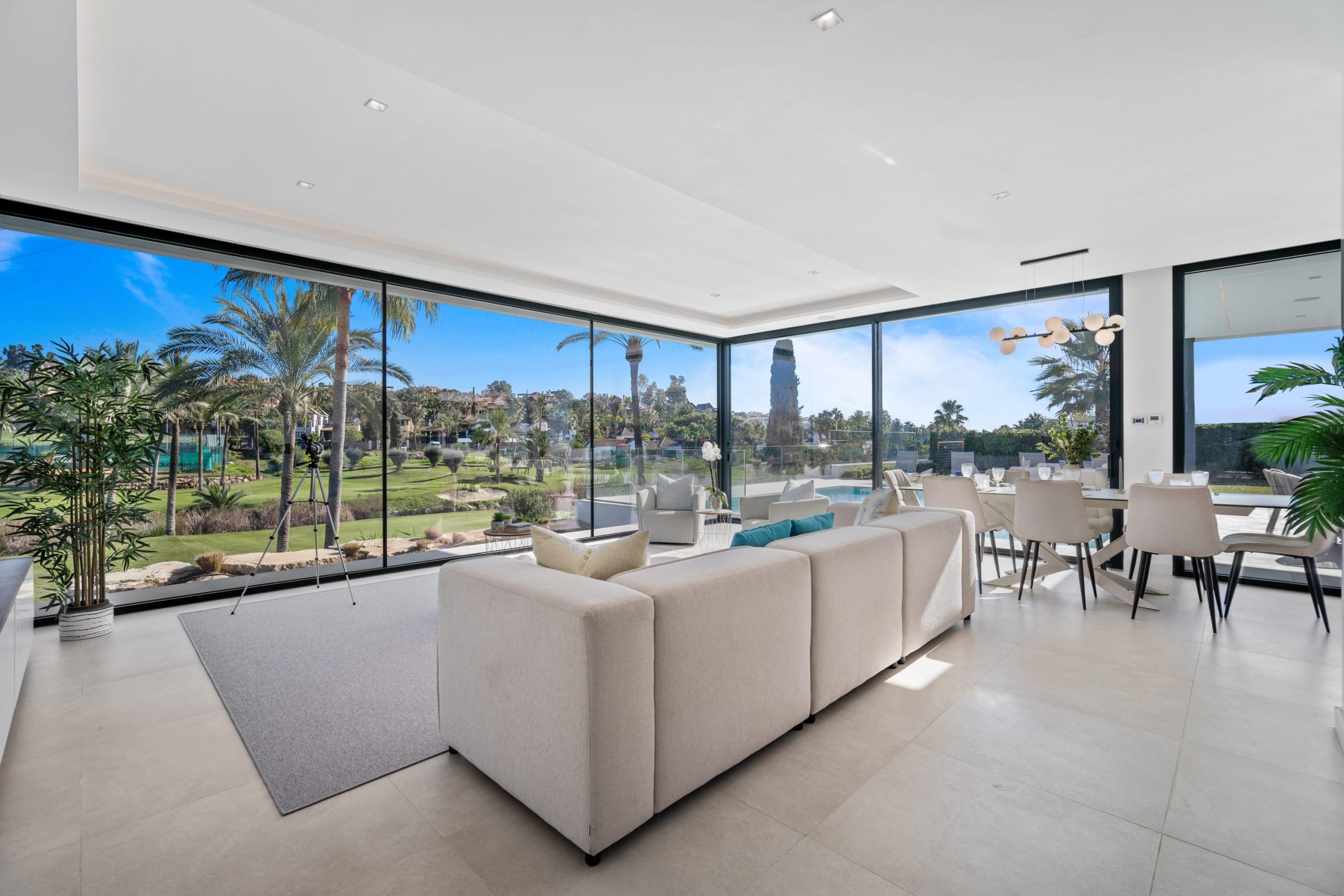 Villa Sandie is located in the tranquil setting in the heart of El Paraiso but only less than 3kms to the beach, this short-term rental is facing El Campanario Golf course and it has three other iconic golf courses: El Paraiso Golf, Atalaya Golf, and Guadalmina Golf, all within 8 minutes by car. The world famous marina of Puerto Banus is less than 10 minutes by car. The property is surrounded by the idyllic Andalusian nature and similar high-end properties.